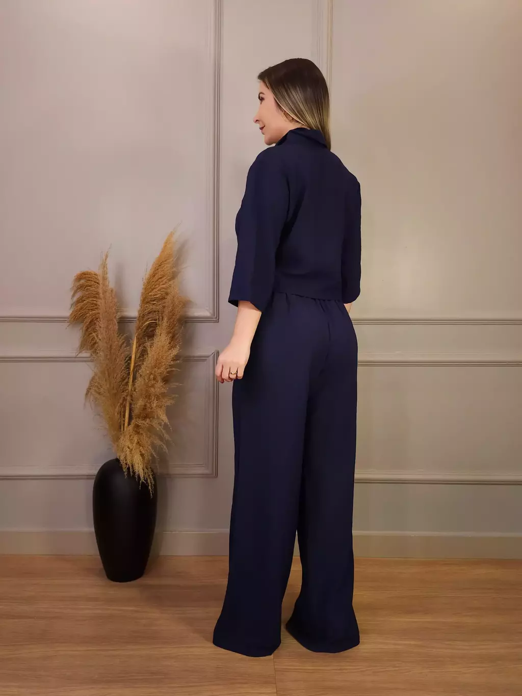 Calça pantalona com cintura alta e detalhe de zíper frontal. Esta calça é ideal para quem busca conforto e estilo em uma única peça. Seu design moderno, com pernas largas e cintura marcada, alonga a silhueta e proporciona um visual elegante e sofisticado. Confeccionada em tecido leve e fluído, é perfeita para diversas ocasiões, desde o dia a dia no trabalho até eventos mais sociais.