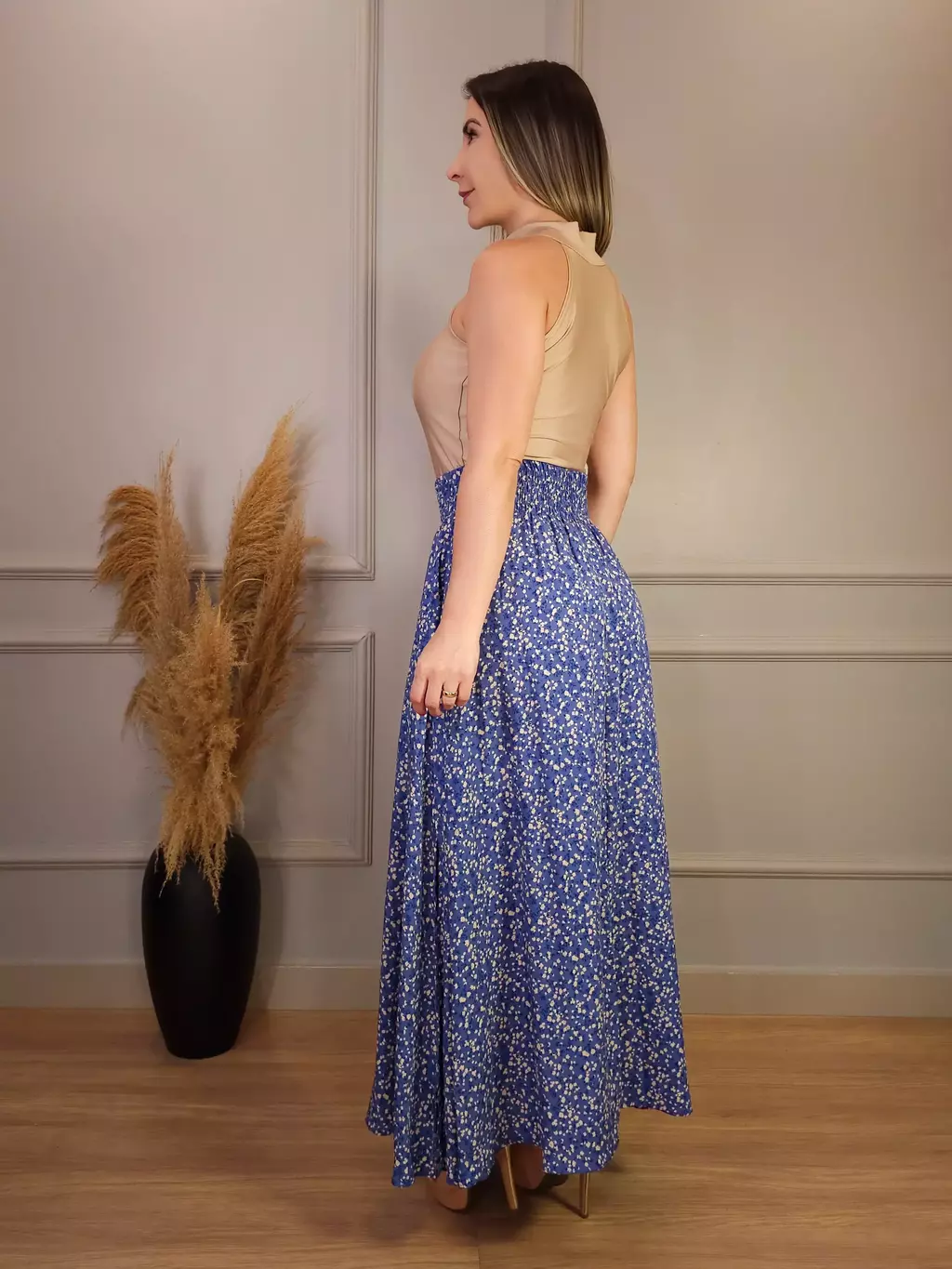 Combinações: Combine com blusas de cores neutras, como branco, preto ou bege, para destacar a estampa da saia. Para um look mais casual, combine com uma camiseta básica e tênis. Para um visual mais elegante, aposte em uma blusa de seda e sandálias de salto alto. Acessórios delicados complementam o visual.