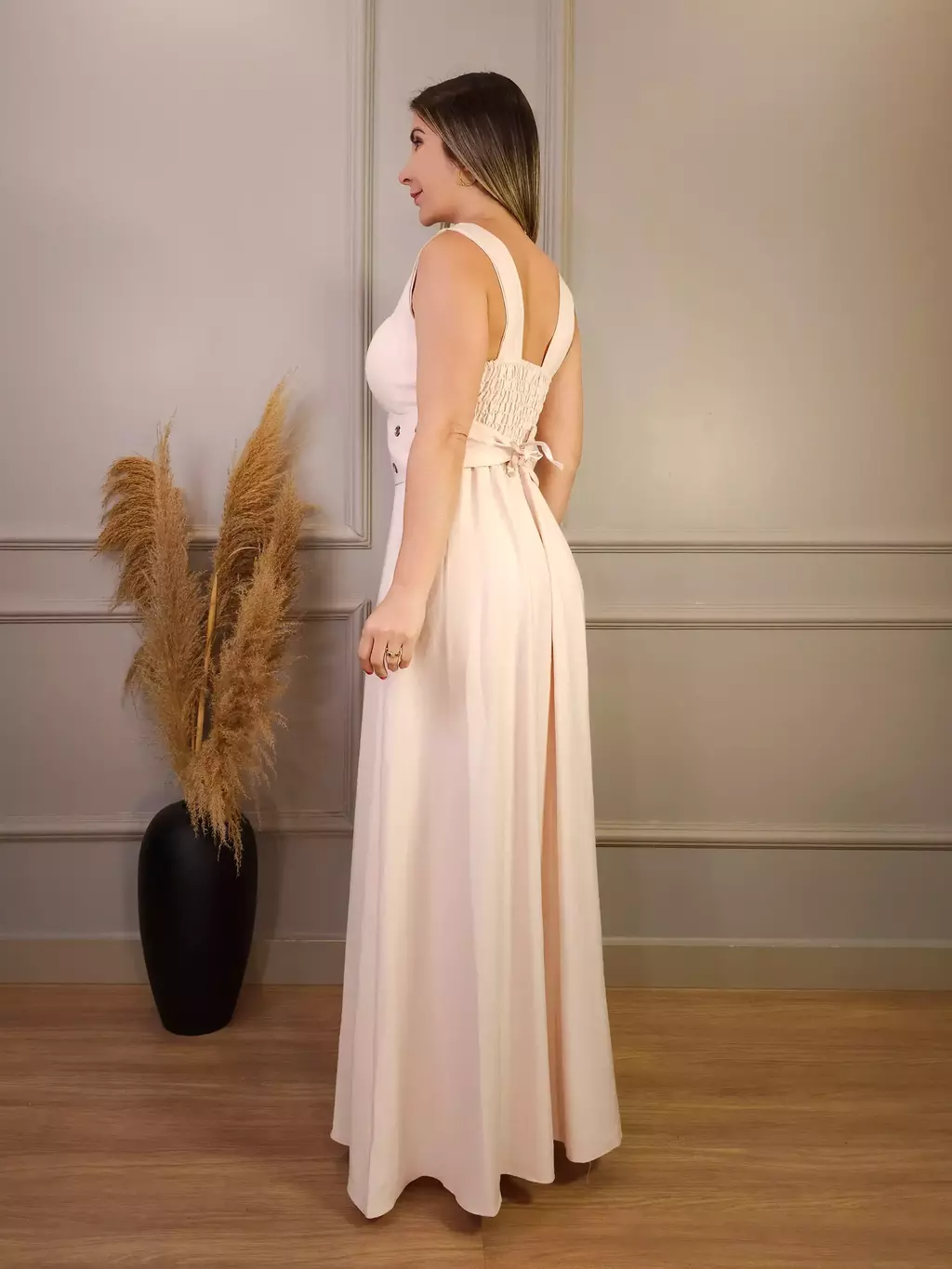 Combinações: Combine com sandálias de salto alto para um evento formal ou rasteirinhas para um look mais casual. Acessórios delicados, como colares e brincos, complementam o visual.